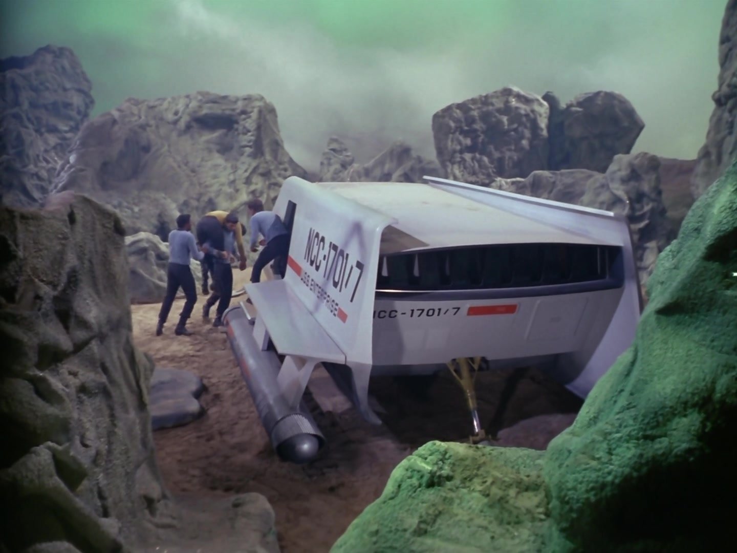 Crash landing on a planet populated by hostile giants, the 7-man crew of the shuttlecraft Galileo find themselves unable to communicate with the enterprise or to escape the planet’s atmosphere.